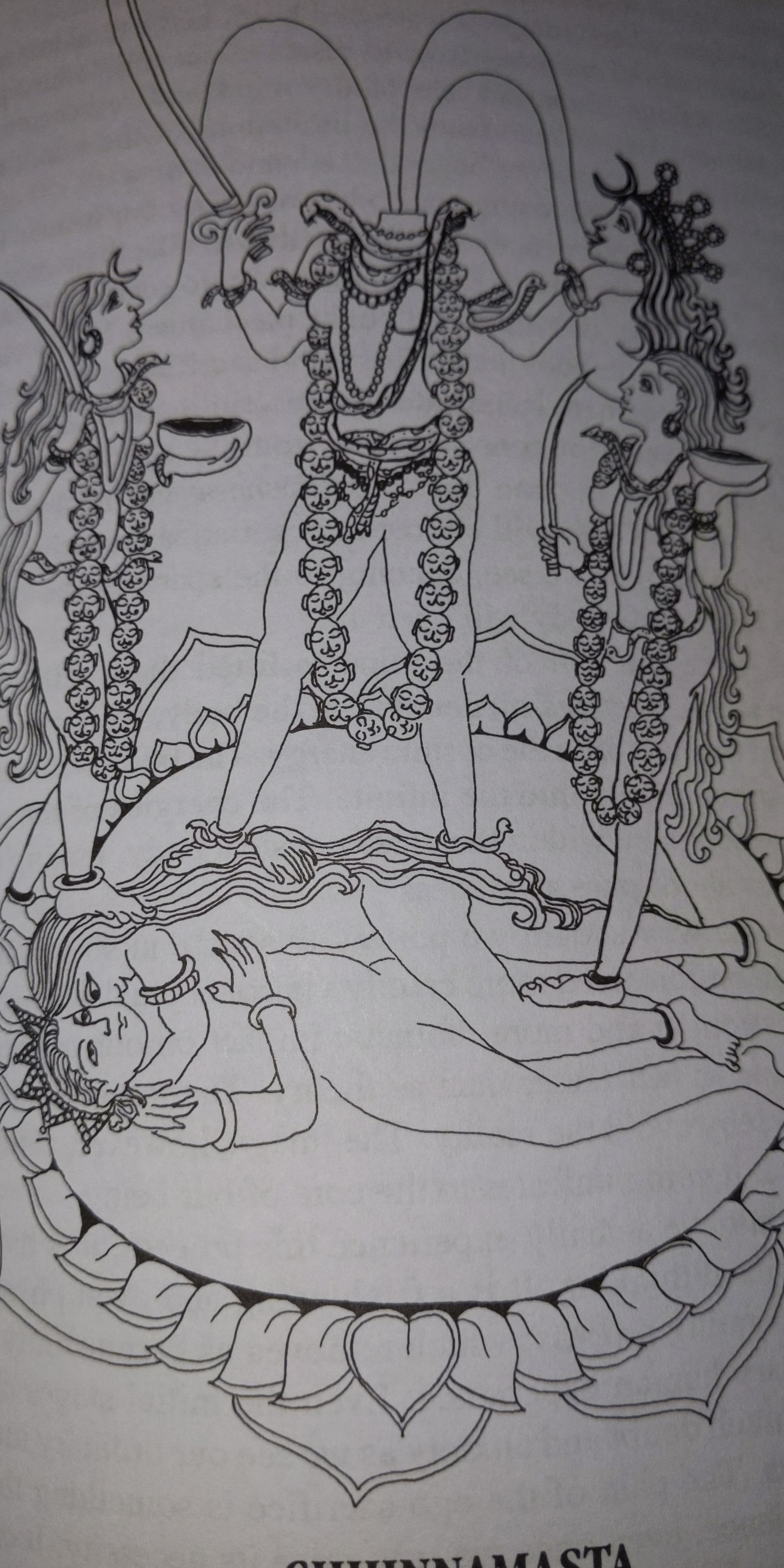 (The image is of a Tantric Goddess “Chinnamasta”, one of the Mahavidyas or Great Wisdom Goddesses).